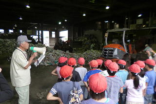 ①深谷清掃センターでは、榛沢小学校の児童と一緒に話を聞き、ごみクレーンなどが 動いている様子を見ることができました。