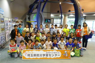 ③埼玉県防災センターでは、震度・防風・火災・煙・消火体験などを行い、自分の身は自分で守ることを学びました。