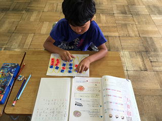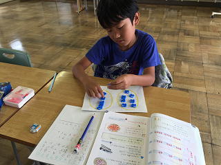 おはじきを使い答えを出しました。