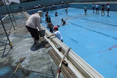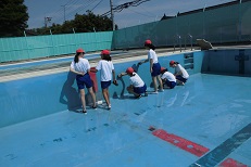 みなさんのおかげで今年もきれいなプールで水泳の授業ができそうです!