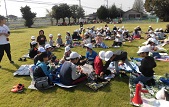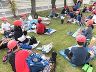 本日の給食の時間は、今回は特別に芝生を開放し、秋風給食を実施しました。縦割り班で楽しく給食を食べ、いろんな学年の友達と仲良く協力して活動する時間をつくりました。、紅組、白組にそれぞれ5班の縦割り班でした。まずは班で給食を食べその後は外遊びをみんなでやりました。6年生がリーダーシップを発揮し、食事も遊びも楽しく実施しました。風もなく秋空のもとみんなで楽しむ時間をたっぷりとりました。