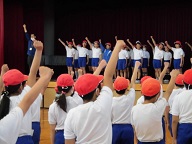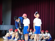 昨日16日(火)体育館で今年度初めての業間運動がありました。どの学年も無言入場でき1年生も同じようにできました。体育主任の新井先生からはじめに「無言整列よくできました。1人1人が意識して作ることが大事」とほめていただきました。内容は規律ある態度の一つでもありる集団行動の行動様式、気をつけ 礼 整列 方向変換、腰をおろし休む姿勢等の指導でした。全部の先生が手取り足取り丁寧に見ていただきました。相手に伝わらないと形にならないということです。