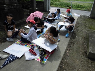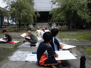 6年生は、地元の熊野神社か永光寺のどちらか、気に入った方を写生しました。どんな作品になるか楽しみです。