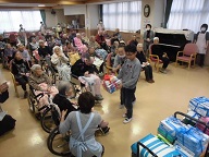 先日の4日(水)に4年生が福祉体験も含め、学校で集めたたくさんのティッシュとタオルを市内のむさし愛光園に訪問し贈呈式に参加しました。福祉施設の見学と説明を受け、お年寄りとの交流では児童の合唱や手作りのペンダントをプレゼントし、肩もみや会話もしました。貴重な体験をさせていただきました。そして、社会福祉協議からたくさんの図書を頂きました。