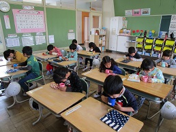1回目は水での練習でしたが、2回目はフッ素を使って実施しました。約束を守り、安全に上手にぶくぶくうがいができました。