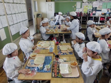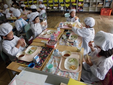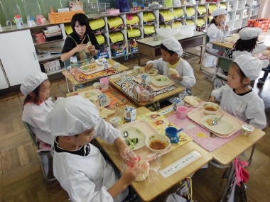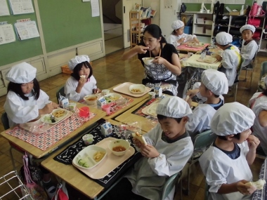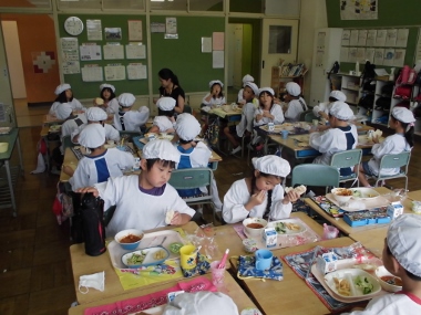 8月31日(月)、今日から2学期の給食が始まりました。1ヶ月半ぶりの給食です。今日の献立は、ナン&チリミートソース、フライドホテト、サラダ、ヨーグルトなど。どの子もみんなうれしそうに給食を食べていました。どの学級も完食です。