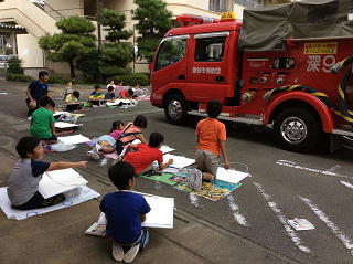 消防車をよく見て描きました。