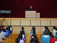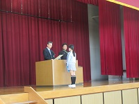 そんな4年生に向けて9日(木)の業前に壮行会を実施しました。本番と同じ衣装・隊形で全校児童の前で歌声を披露しました。その美しいこと!聴き惚れました。2曲終わった後の大きな拍手を胸に、本番でも精一杯頑張ってきてほしいと思います。