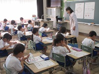 深谷市では、小学校1年生から英語活動を導入し、児童が英語に触れ、慣れ親しみ、人との豊かなコミュニケーション能力の素地を養うべく、特別の教育課程を編成します。ALT(外国語指導助手)を活用し、コミュニケーションを基盤とした活動を展開し、英語に対する興味関心を高め、国際教育を推進していきます。