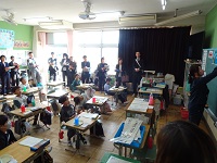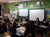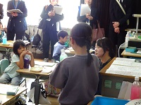 同じ日に6年生は深谷市教育委員会教育長の片桐先生との交流会「ふっかEミーティング」に参加しました。元教員でもあり、校長先生でもあった片桐先生の授業に授業をしていただき、